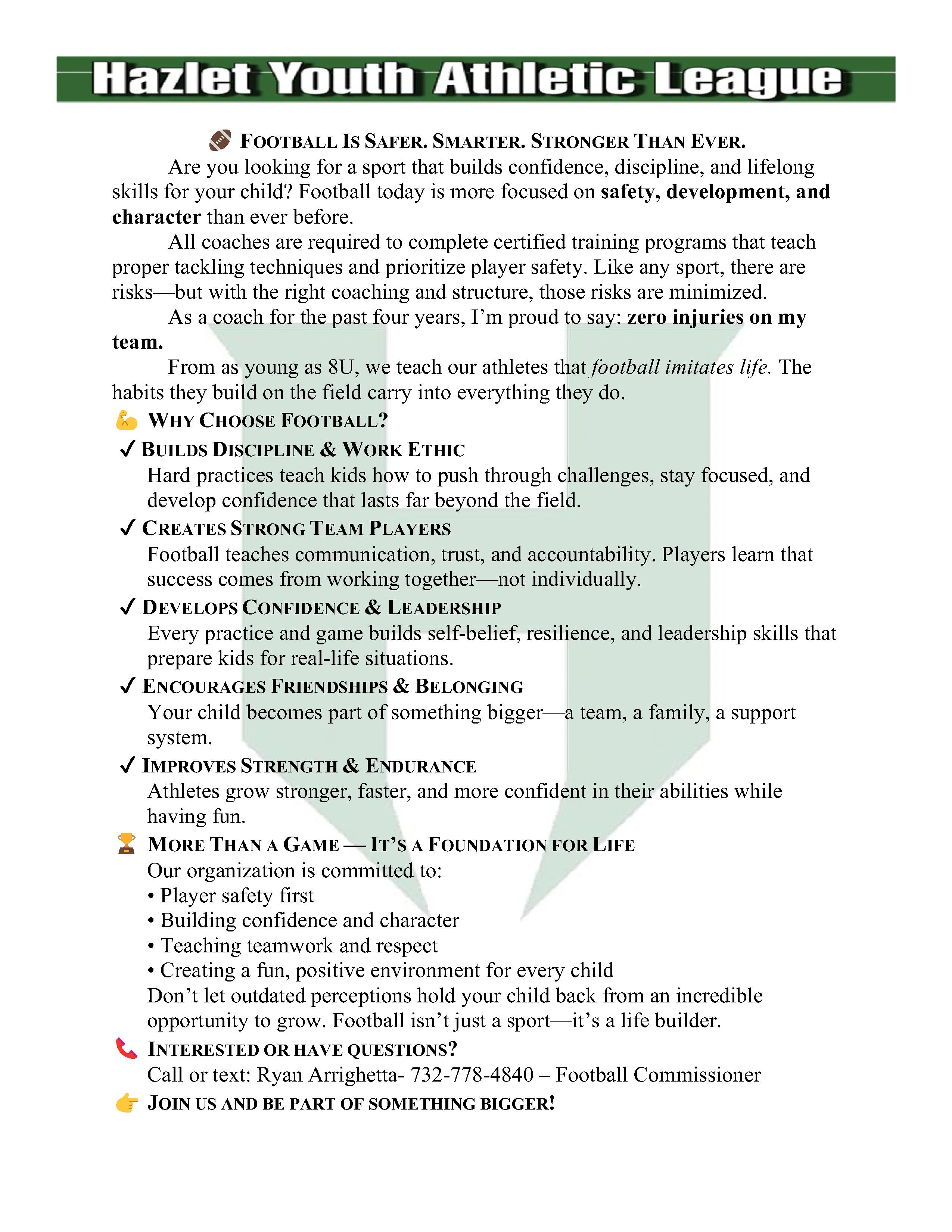 Football jerseys and Cheer uniforms will not be ordered and players will not be placed on a team until all SIX required checks are submitted.